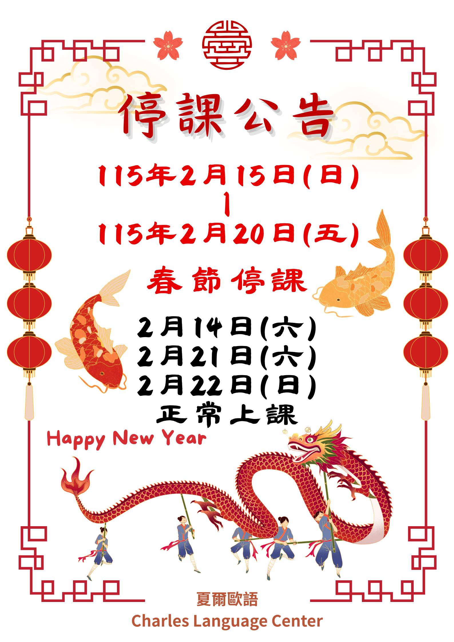 夏爾春節停課期間:
