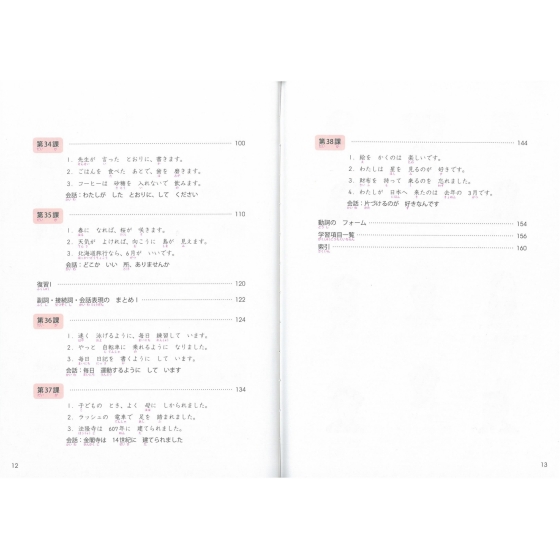 每課依序為「單字」、「句型」、「例句」、「會話」、「練習A」、