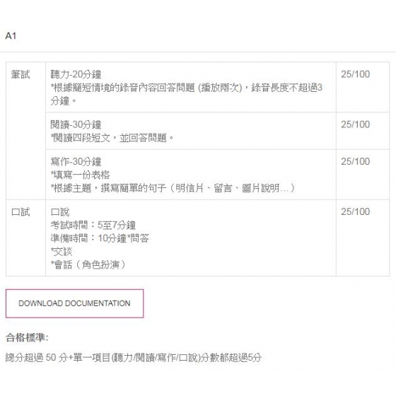 *適合已學過初級A1課程的學生,於考試前演練考型加強 * 開課日期:檢定日期前兩個月開課,實際開課時間依報名學生狀況另行約定。 上課日程:一週一次,每次上課1.5小時。 開班人數:3人即可成班。 上課地點:可選擇於中清校或英才校上課。 中清校:台中市北區中清路一段370號10F之1 英才校:台中市西區英才路641號